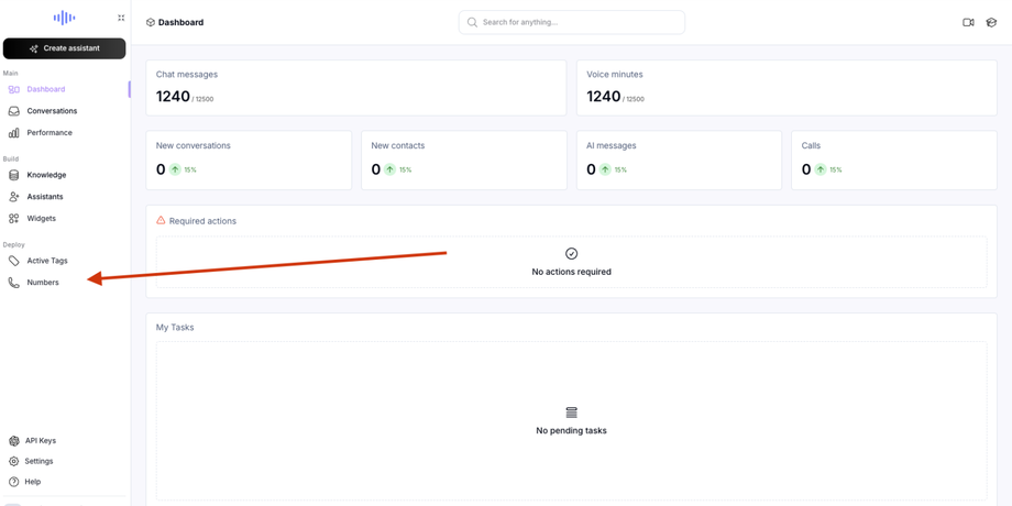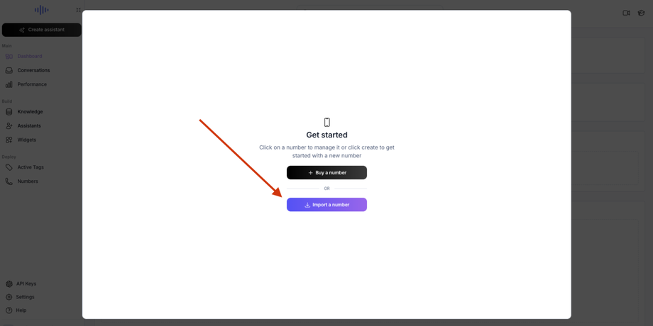 1. Go to your AI portal and navigate to the number tag in the main navigation or within an assistant - then click on import a number: