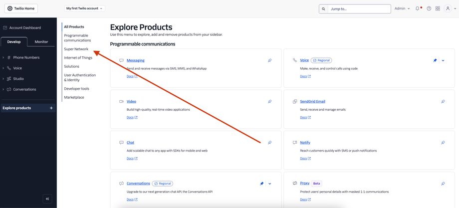 3. Next, on the menu for products - we need to click on “Super Network”: