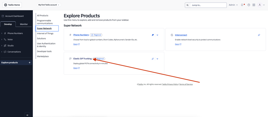4. We need to click on “Elastic SIP Trunking” - this is how we will be able to automate inbound and outbound calls on your behalf: