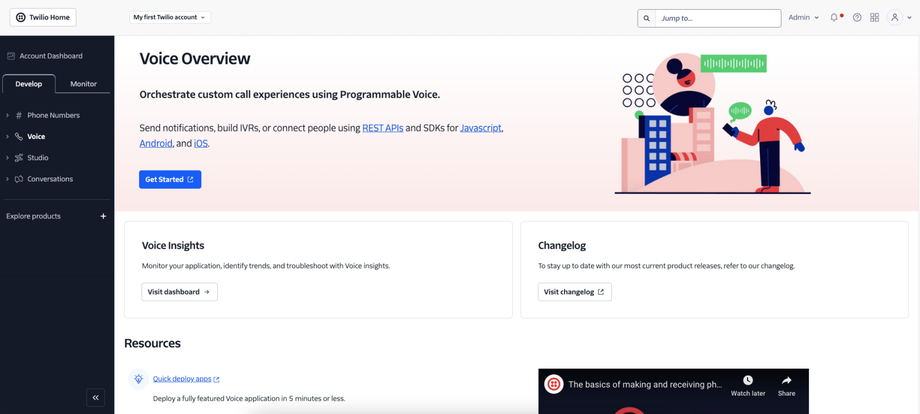 1. Navigate to twilio.com (console.twilio.com) and you should see a similar page to the screenshot below: